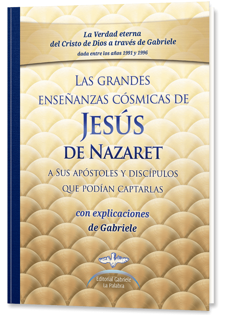 Las grandes enseñanzas cósmicas de Jesús de Nazaret son la Ley Absoluta, la ley de la verdadera vida, que Él hace unos 2000 años enseñó a Sus apóstoles y discípulos que Le podían comprender. Hoy, a través de la obra de la Sabiduría divina, Gabriele, Sus grandes enseñanzas cósmicas están por primera vez en la historia de la humanidad al alcance de toda persona. Ellas han sido manifestadas por el Cristo de Dios en la palabra profética a través de Gabriele, puesto que ha llegado el momento en que Él, Cristo, manifiesta a todos la Ley de la vida, para que Le encuentren a Él. Podemos compenetrarnos con la vida en lo profundo de nuestra alma, que es nuestra patria, y de esta manera saber quiénes somos verdaderamente, de dónde venimos y adónde vamos. Gabriele ha expuesto y explicado las grandes enseñanzas cósmicas de Jesús de Nazaret. Ella muestra cómo las podemos aplicar en la vida diaria, en la familia, en la profesión y en el tiempo libre, Aprendemos p. ej. a captar correctamente a nuestros semejantes, a hacernos independientes de la opinión y del reconocimiento de otros, a hallar la verdadera concentración y mucho más. Encontramos el camino al Espíritu Libre, Dios en nosotros. Las grandes enseñanzas cósmicas de Jesús de Nazaret han sido compendiadas en un volumen de fina presentación y gran tamaño, incluyendo todas las explicaciones de Gabriele.